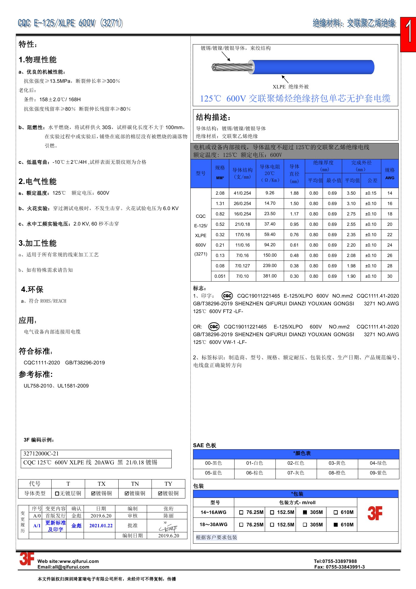 CQC XLPE 125度 600V(3271)