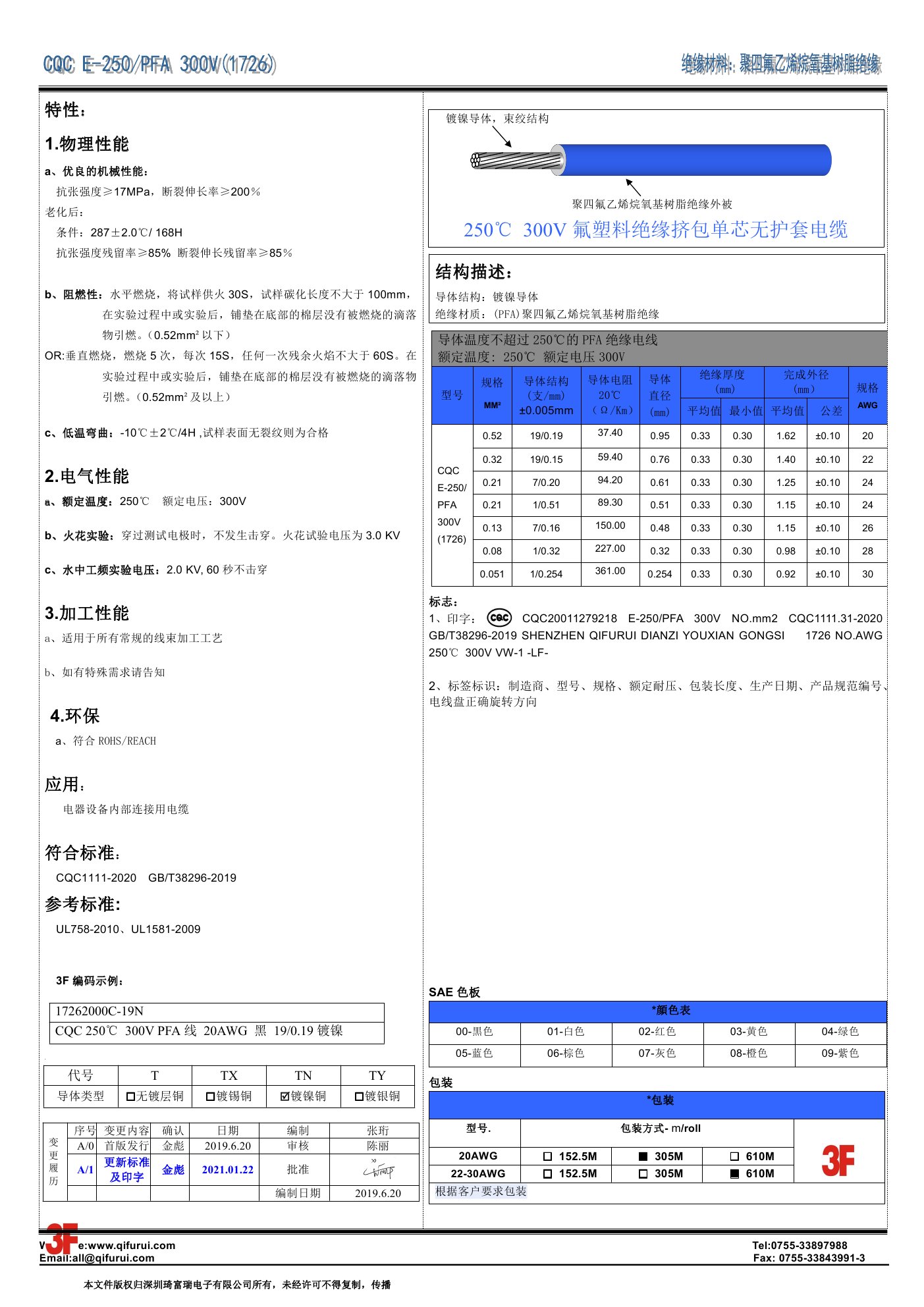 按绝缘材料划分 - 氟塑料绝缘高温电线 - PFA绝缘高温特种电线 -